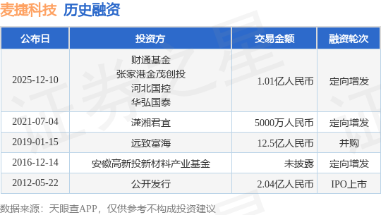 证券之星消息,根据天眼查APP于12月10日公布的信息整理,深圳市麦捷微电子科技股份有限公司定向增发融资,融资额1.01亿人民币,参与投资的机构包括财通基金,张家港金茂创投,河北国控,华弘国泰。