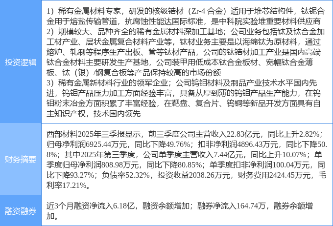 该股为有色 · 钛,钍基熔盐堆,有色 · 钨概念热股,当日有色 · 钛概念上涨2.9%,钍基熔盐堆概念上涨2.83%,有色 · 钨概念上涨2.37%。