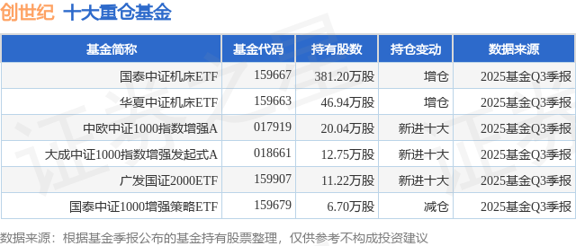根据2025基金Q3季报公募基金重仓股数据,重仓该股的公募基金共6家,其中持有数量最多的公募基金为国泰基金的国泰中证机床ETF。国泰中证机床ETF目前规模为11.7亿元,最新净值1.4557(12月18日),较上一交易日下跌1.67%,近一年上涨43.39%。该公募基金现任基金经理为苗梦羽。苗梦羽在任的基金产品包括:国泰中证全指软件ETF联接A,管理时间为2021年9月28日至今,期间收益率为-11.12%;国泰中证全指软件ETF,管理时间为2021年9月28日至今,期间收益率为-11.94%;国泰中证基建ETF,管理时间为2022年2月9日至今,期间收益率为4.11%;国泰中证港股通科技ETF发起联接A,管理时间为2022年6月7日至今,期间收益率为20.64%。