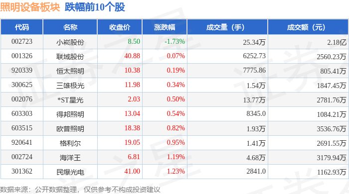 从资金流向上来看,当日照明设备板块主力资金净流出2789.48万元,游资资金净流入1791.63万元,散户资金净流入997.86万元。照明设备板块个股资金流向见下表: