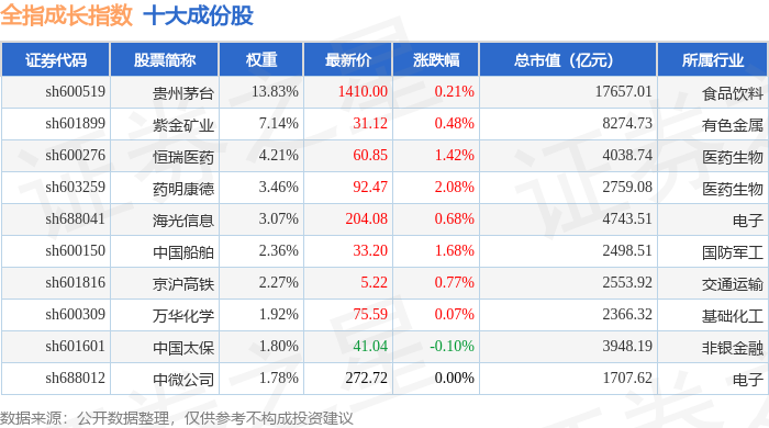 证券之星消息,12月19日,全指成长(000057)指数报收于3765.57点,涨0.4%,成交1261.46亿元,换手率0.89%。当日该指数成份股中,上涨的有104家,均胜电子以7.34%的涨幅领涨,下跌的有41家,仕佳光子以3.05%的跌幅领跌。