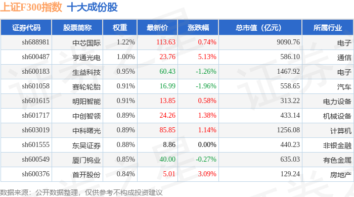 上证F300(000099)指数十大成份股详情如下: