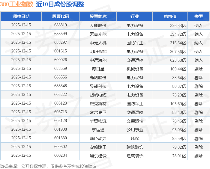 近10日内380工业(000106)指数成份股做了调整,新纳入了5只股票,剔除了11只股票。