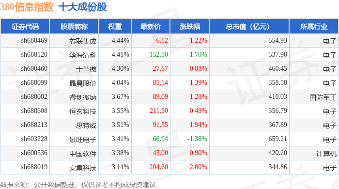 近10日内380信息(000111)指数成份股做了调整,新纳入了9只股票,剔除了6只股票。