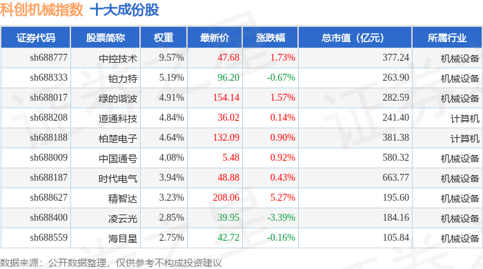 近10日内科创机械(000693)指数成份股做了调整,新纳入了2只股票,剔除了2只股票。