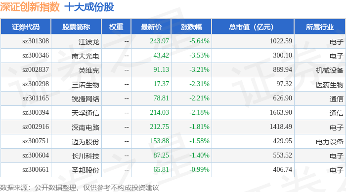 证券之星消息,12月19日,深证创新(399016)指数报收于5601.56点,涨0.91%,成交1207.39亿元,换手率1.82%。当日该指数成份股中,上涨的有77家,航天智造以16.3%的涨幅领涨,下跌的有23家,江波龙以5.64%的跌幅领跌。