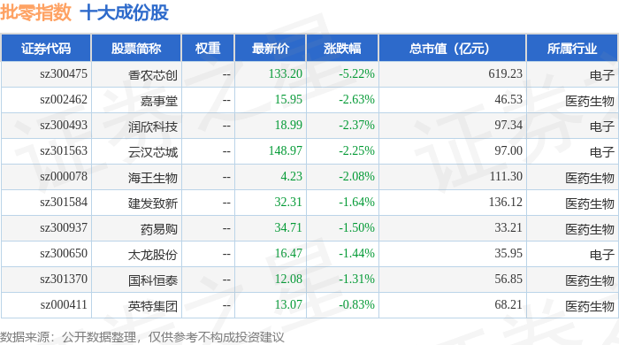 批零指数(399236)十大成份股详情如下: