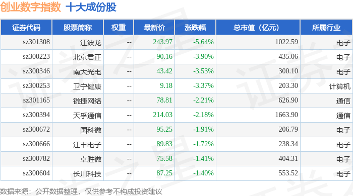 创业数字(399263)指数十大成份股详情如下: