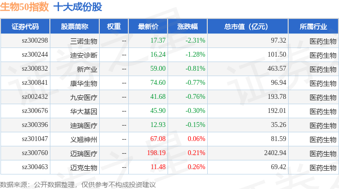 近10日内生物50(399280)指数成份股做了调整,新纳入了2只股票,剔除了2只股票。
