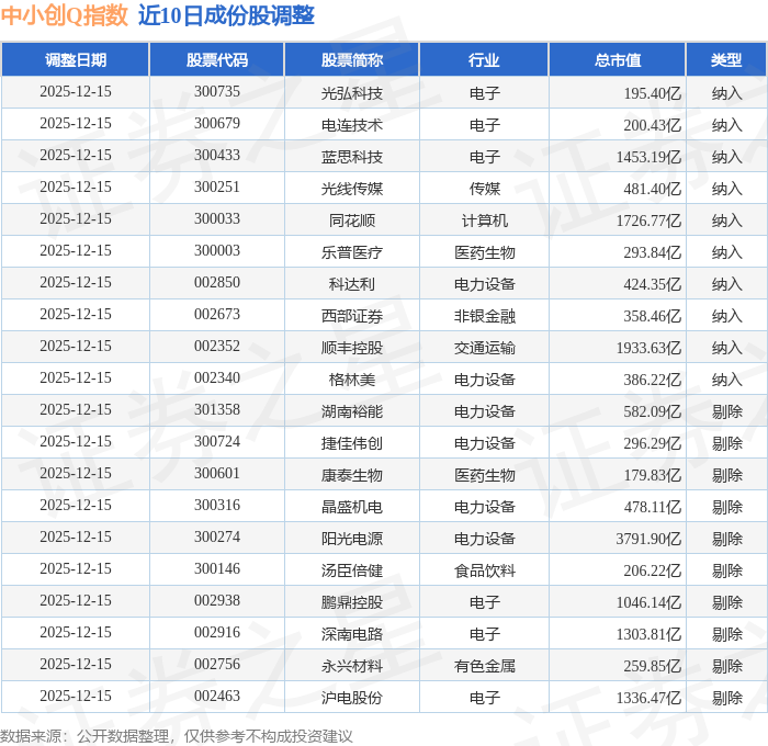 近10日内中小创Q(399294)指数成份股做了调整,新纳入了10只股票,剔除了10只股票。