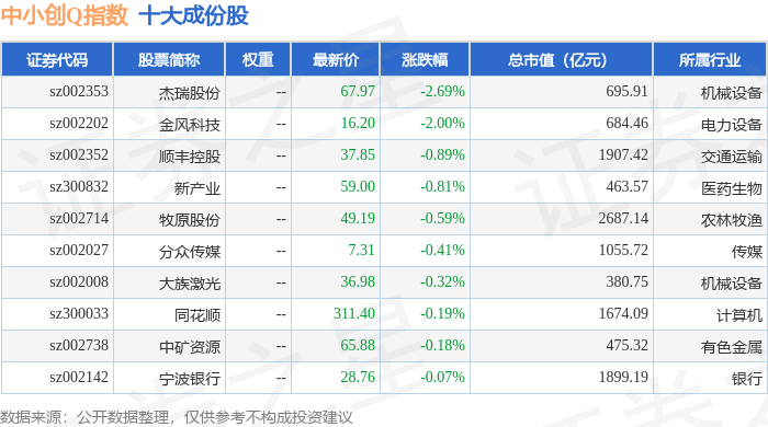 中小创Q(399294)指数十大成份股详情如下: