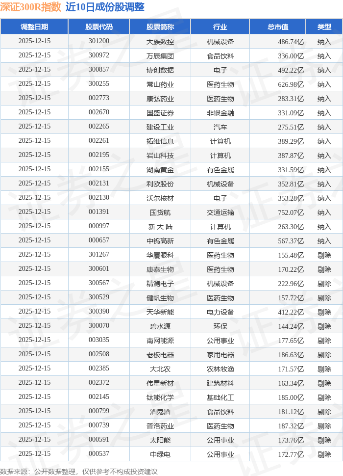 近10日内深证300R(399344)指数成份股做了调整,新纳入了15只股票,剔除了15只股票。