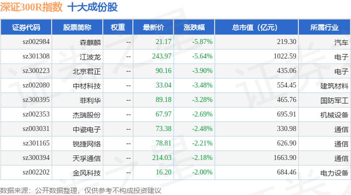 资金流向方面,深证300R(399344)指数成份股当日主力资金净流入合计3.54亿元,游资资金净流出合计29.79亿元,散户资金净流入合计26.25亿元。成份股资金流向详情见下表: