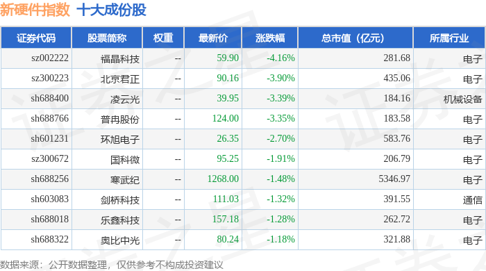 近10日内新硬件(399360)指数成份股做了调整,新纳入了2只股票,剔除了2只股票。
