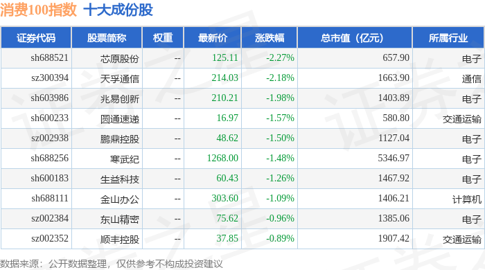 近10日内消费100(399364)指数成份股做了调整,新纳入了11只股票,剔除了11只股票。