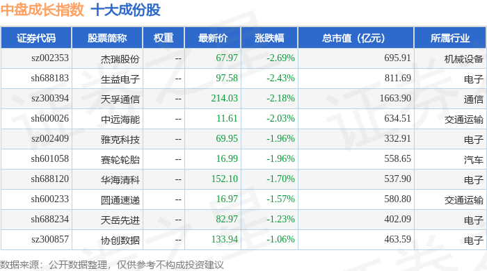 资金流向方面,中盘成长(399374)指数成份股当日主力资金净流入合计1.29亿元,游资资金净流出合计7.23亿元,散户资金净流入合计6.03亿元。成份股资金流向详情见下表: