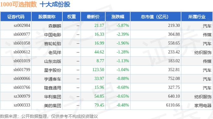 近10日内1000可选(399384)指数成份股做了调整,新纳入了4只股票,剔除了2只股票。