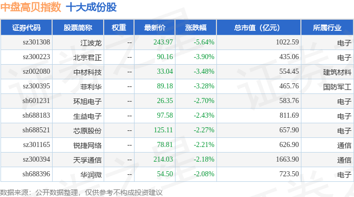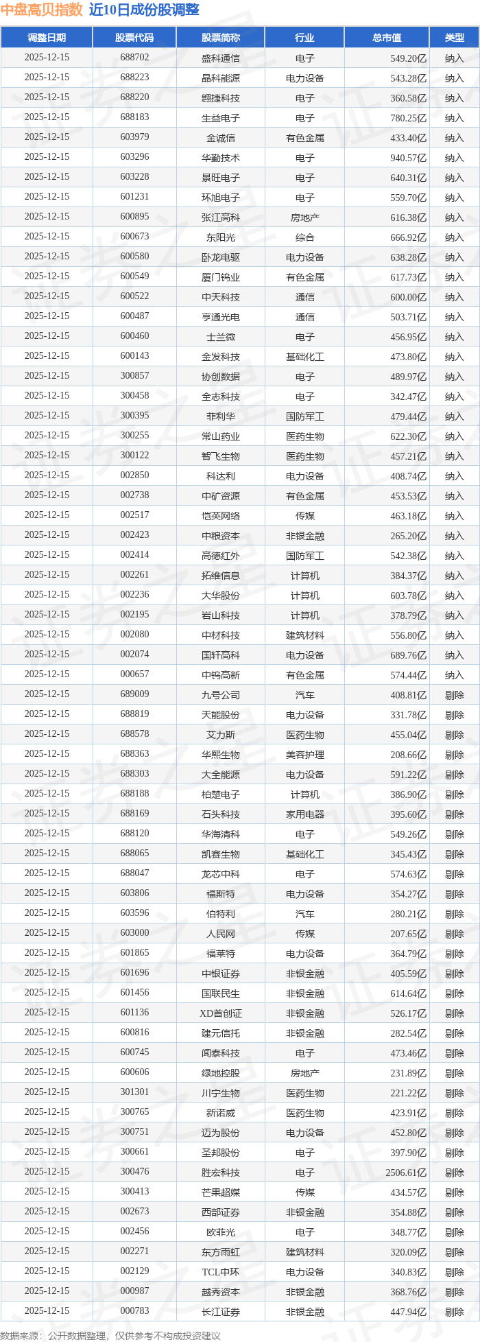 近10日内中盘高贝(399407)指数成份股做了调整,新纳入了32只股票,剔除了32只股票。