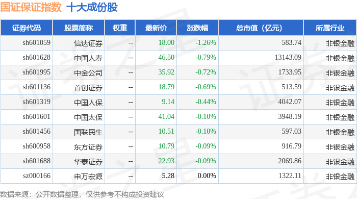 证券之星消息,12月19日,国证保证(399420)指数报收于1576.61点,涨0.29%,成交311.95亿元,换手率0.71%。当日该指数成份股中,上涨的有19家,天风证券以2.43%的涨幅领涨,下跌的有9家,信达证券以1.26%的跌幅领跌。