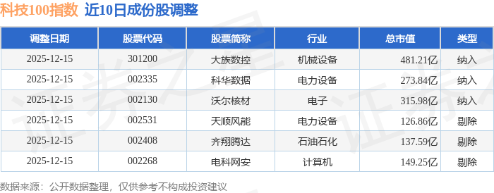 科技100(399608)指数十大成份股详情如下: