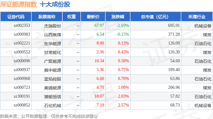深证能源(399613)指数十大成份股详情如下: