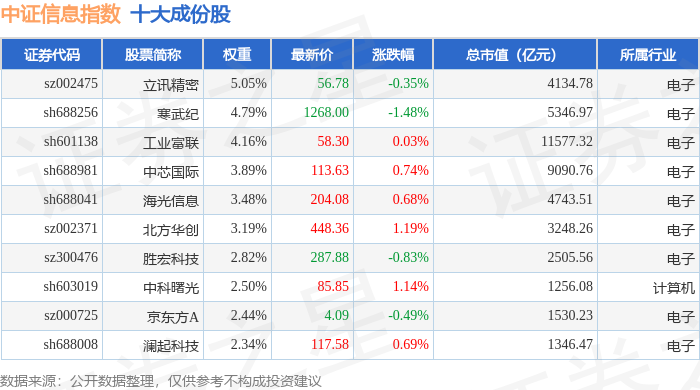 证券之星消息,12月19日,中证信息(399935)指数报收于6127.01点,涨0.02%,成交1517.73亿元,换手率1.52%。当日该指数成份股中,上涨的有76家,安克创新以5.82%的涨幅领涨,下跌的有54家,江波龙以5.64%的跌幅领跌。