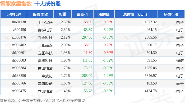 近10日内智能家居(399996)指数成份股做了调整,新纳入了4只股票,剔除了4只股票。