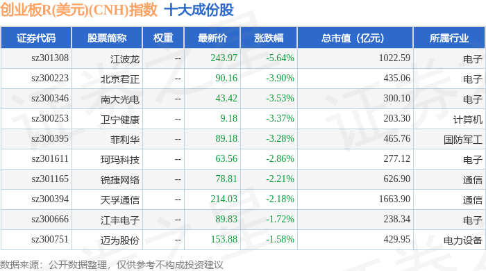 创业板R(美元)(CNH)(470007)指数十大成份股详情如下: