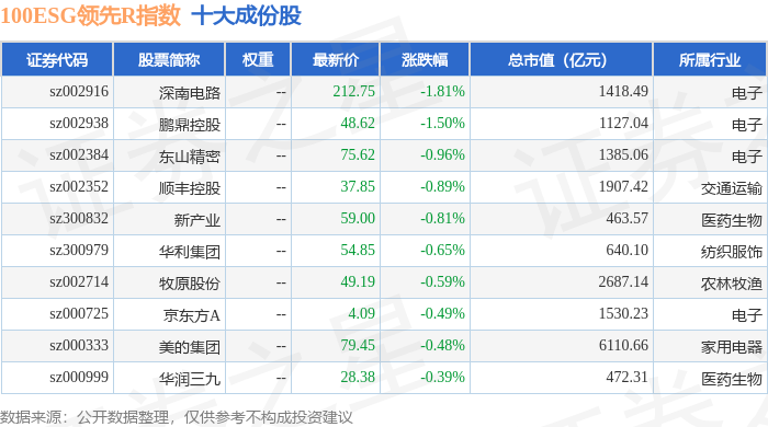 证券之星消息,12月19日,100ESG领先R(470030)指数报收于9002.61点,涨0.42%,成交856.44亿元,换手率0.88%。当日该指数成份股中,上涨的有37家,安克创新以5.82%的涨幅领涨,下跌的有12家,深南电路以1.81%的跌幅领跌。