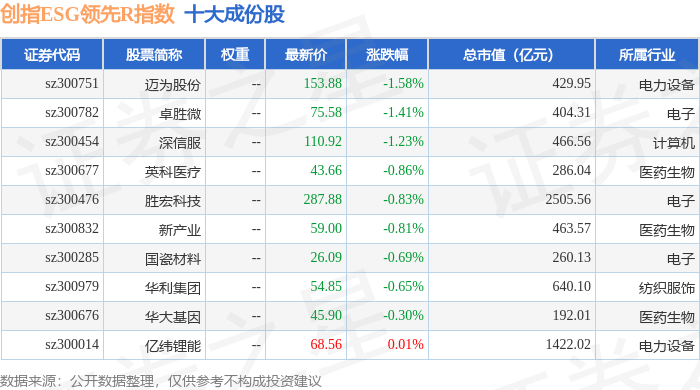 创指ESG领先R(470031)指数十大成份股详情如下: