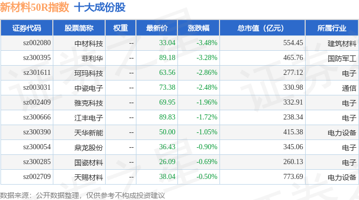 近10日内新材料50R(470042)指数成份股做了调整,新纳入了1只股票,剔除了1只股票。