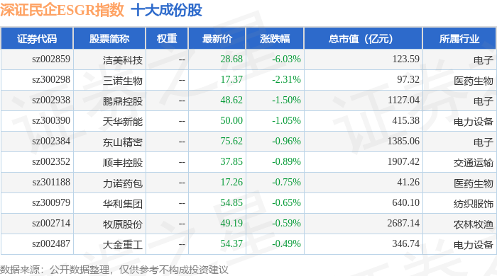 深证民企ESGR(470056)指数十大成份股详情如下: