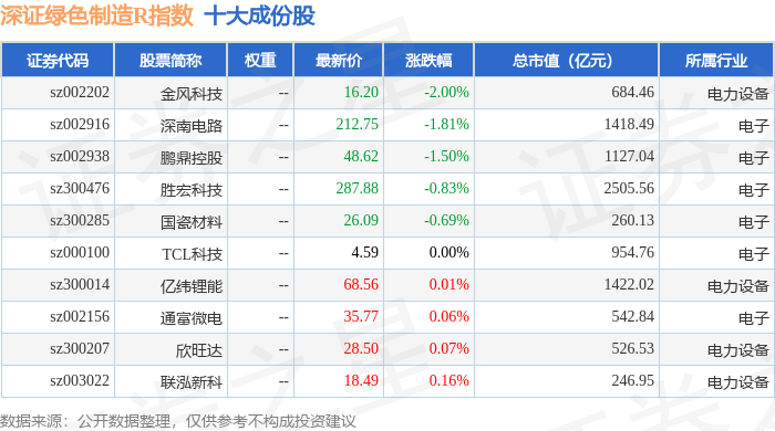 深证绿色制造R(470069)指数十大成份股详情如下: