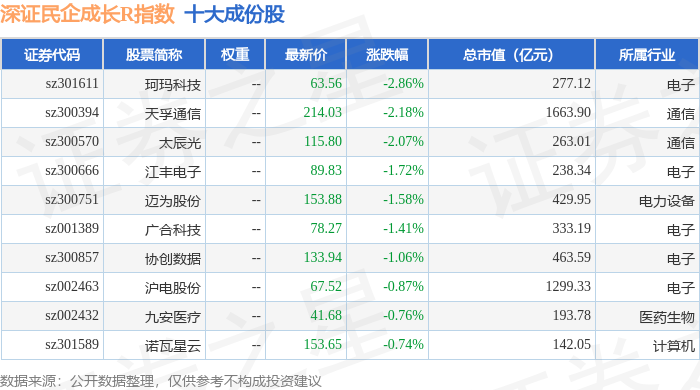 深证民企成长R(470071)指数十大成份股详情如下: