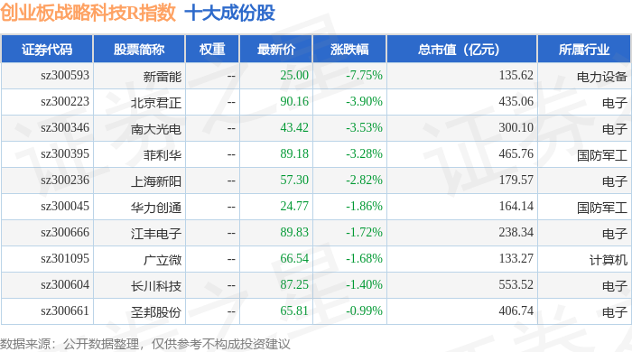 创业板战略科技R(471004)指数十大成份股详情如下: