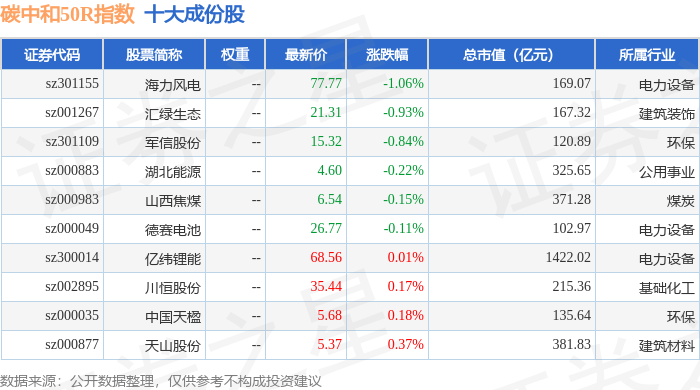 证券之星消息,12月19日,碳中和50R(480021)指数报收于2452.02点,涨1.06%,成交298.37亿元,换手率0.92%。当日该指数成份股中,上涨的有44家,首钢股份以4.09%的涨幅领涨,下跌的有6家,海力风电以1.06%的跌幅领跌。