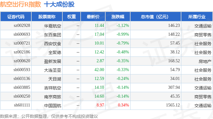 航空出行R(480059)指数十大成份股详情如下:
