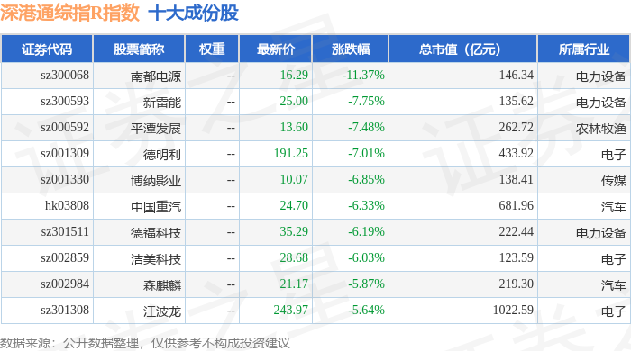 深港通综指R(483005)指数十大成份股详情如下: