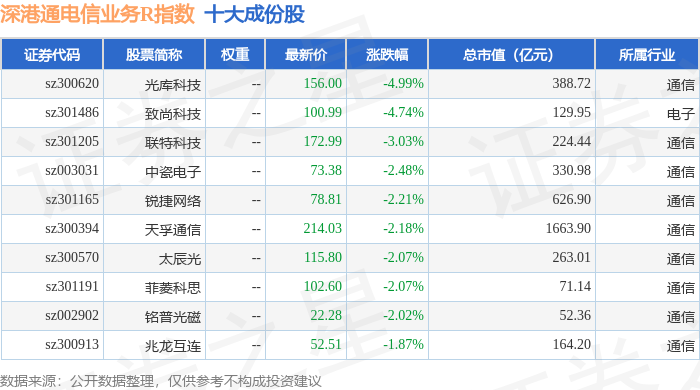 深港通电信业务R(483029)指数十大成份股详情如下: