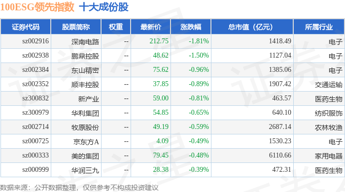 近10日内100ESG领先(970030)指数成份股做了调整,新纳入了5只股票,剔除了5只股票。