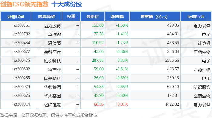 近10日内创指ESG领先(970031)指数成份股做了调整,新纳入了3只股票,剔除了3只股票。