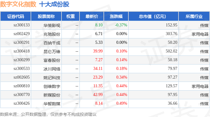 近10日内数字文化(970047)指数成份股做了调整,新纳入了5只股票,剔除了5只股票。