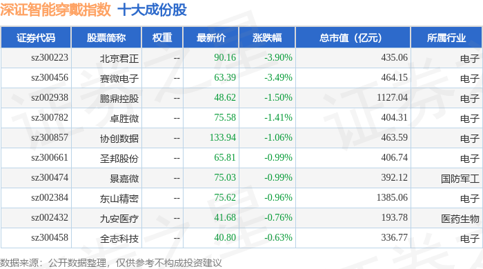 深证智能穿戴(970074)指数十大成份股详情如下: