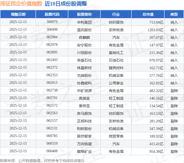 近10日内深证民企价值(970072)指数成份股做了调整,新纳入了9只股票,剔除了9只股票。