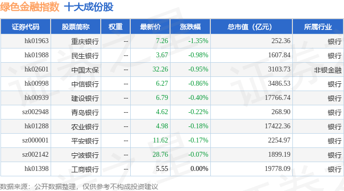 近10日内绿色金融(980052)指数成份股做了调整,新纳入了2只股票,剔除了2只股票。