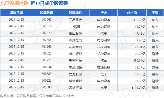 近10日内充电设施(980077)指数成份股做了调整,新纳入了5只股票,剔除了6只股票。