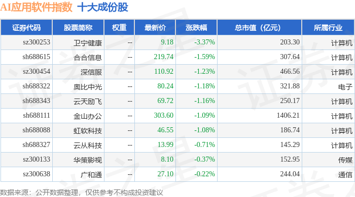 近10日内AI应用软件(980107)指数成份股做了调整,新纳入了3只股票,剔除了3只股票。