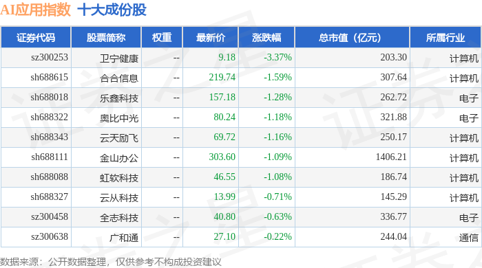 近10日内AI应用(980112)指数成份股做了调整,新纳入了3只股票,剔除了3只股票。