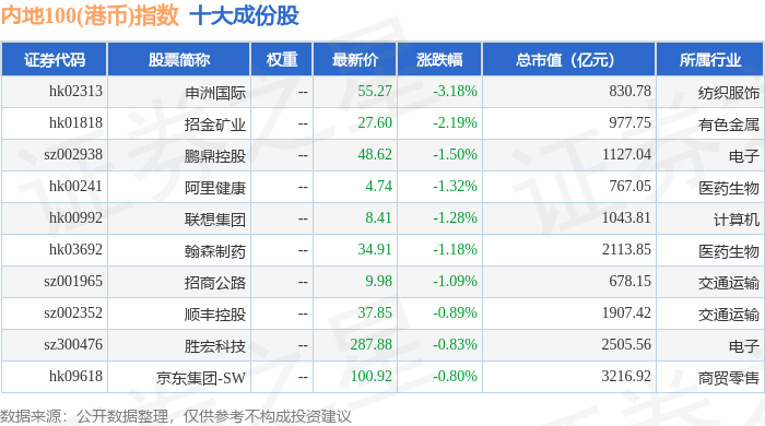 近10日内内地100(港币)(983002)指数成份股做了调整,新纳入了4只股票,剔除了4只股票。