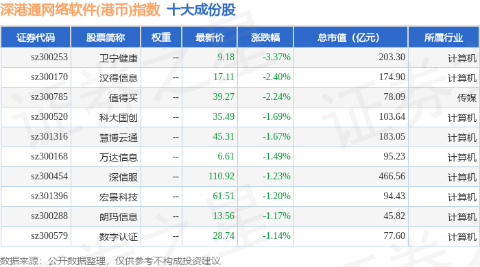 深港通网络软件(港币)(983048)指数十大成份股详情如下: